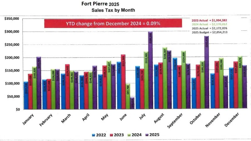 Fort Pierre saw more tax revenue come in in 2025 than it did in 2024. Acting City Finance Officer Twila Hoffrogge said sales tax collections were "significantly" over what was budgeted for 2...