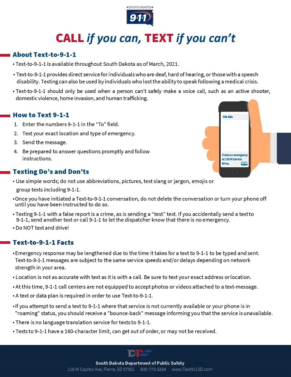 For more information on the Text-to-9-1-1 program in South Dakota, visit text911sd.com.