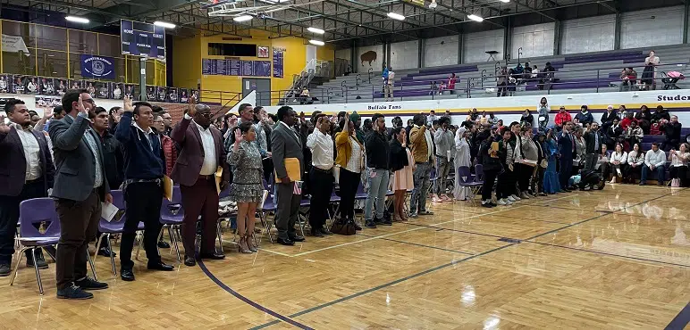 US Citizenship and Immigration Services and the US District Court for the District of South Dakota welcomed 122 new US citizens in a ceremony Nov. 4, 2022, at Parkview Auditorium in Fort Pierre. Photo credit DRG Media Group.