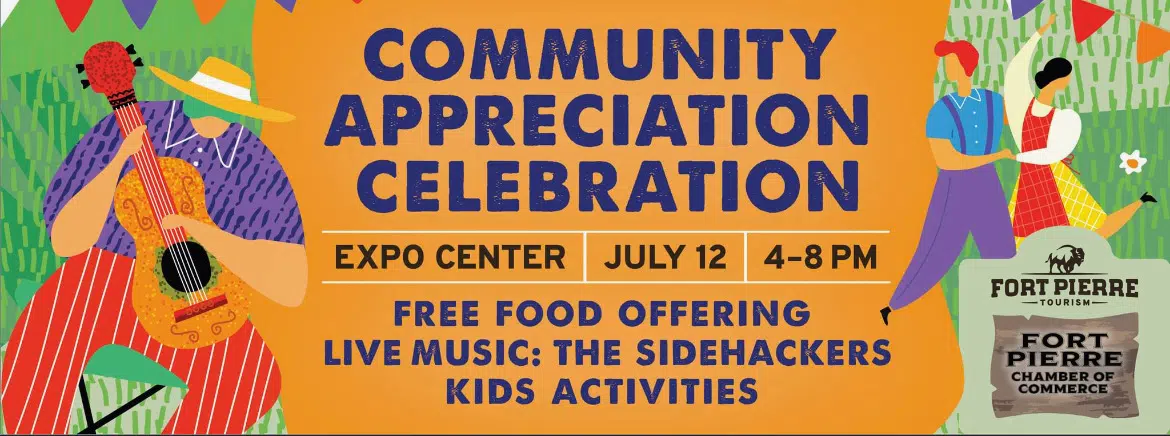 The Fort Pierre Community Appreciation Celebration is today (July 12, 2023) from 4-8pm at the Expo Center.