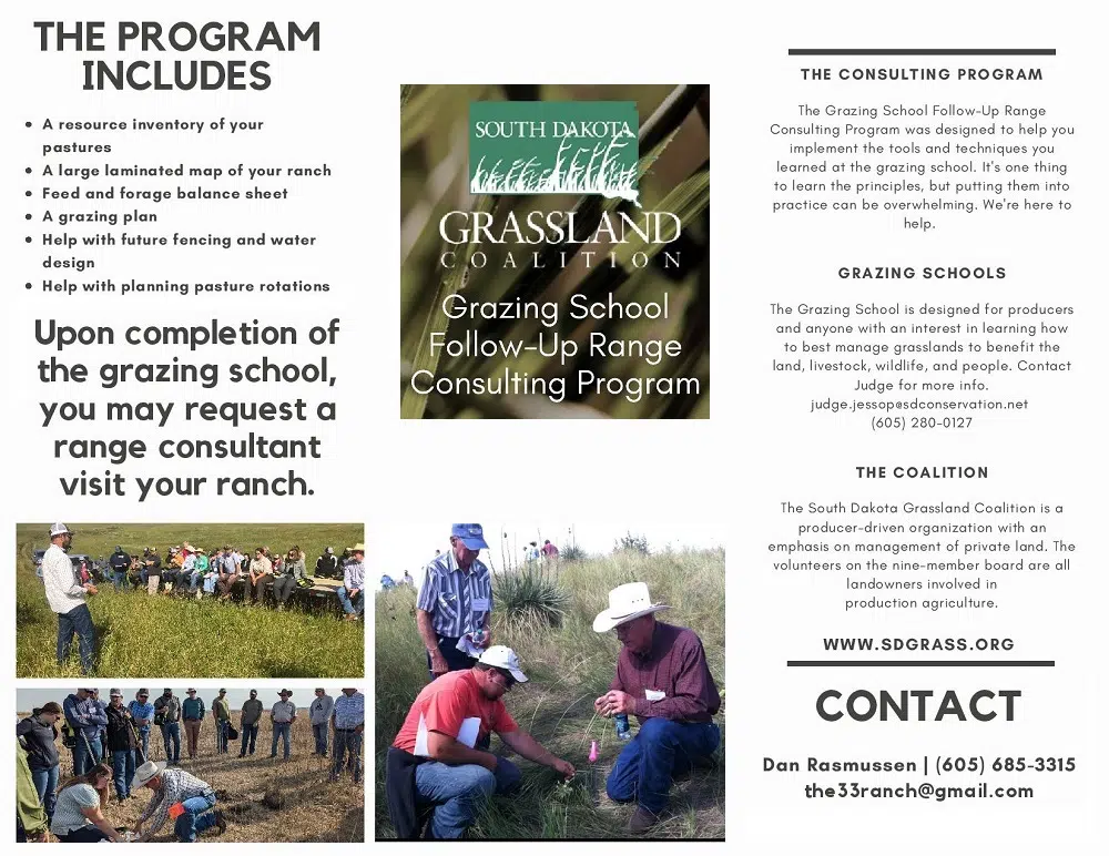 The South Dakota Grassland Coalition is offering a grazing school follow-up consulting program. The program provides resources for those who have attended the Grazing School and would like implement some of the things they’ve learned.