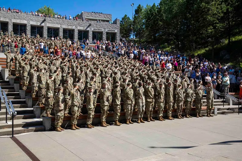 126 U.S. Army National Guard officer candidates from 26 states, one U.S. territory, and the Reserves attended their graduation ceremony from Officer Candidate School at Mount Rushmore near Keystone, July 28.