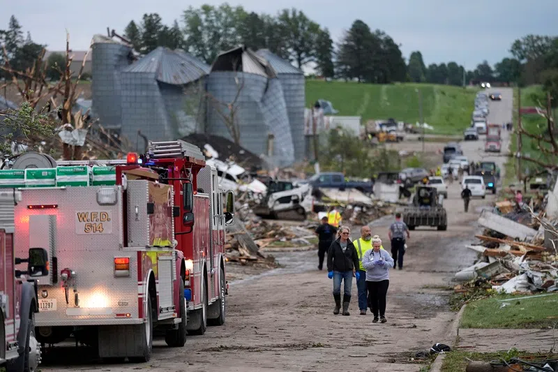 GREENFIELD, Iowa (AP) — Multiple people were killed when a tornado tore through a small Iowa town and left a wide swath of obliterated homes, crumpled cars and splintered trees. The tornado destroyed much of the town of Greenfield. Iowa State Patrol Sgt. Alex Dinkla says at least a dozen people were injured amid widespread devastation in Greenfield. And outside the town, massive wind turbines were buckled and twisted to the ground by the howling winds. Tuesday (May 21, 2024) saw multiple tornadoes, giant hail and heavy rain in several states. The storms moved eastward to pummel parts of Illinois and Wisconsin, knocking out power to tens of thousands of customers in the two states.