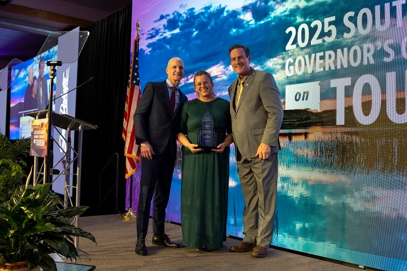 The Governor’s Tourism Rising Star Award was presented to Ashley Geigle of Murdo. This award recognizes an individual who has worked in the tourism industry for two to four years, is excelling in their career, and whose work is demonstrating a bright future in the tourism industry. As economic development director, Geigle was honored for her ability to organize events, host influential industry leaders, and connect economic initiatives with tourism objectives, including spearheading the town’s inaugural Rooster Rush and leading the local Rally Rush. She’s also brought attention to rural communities and focused on local development projects, including expanding housing, daycare options and afterschool programs.