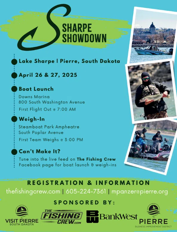 After the National Walleye Tour competes on Lake Sharpe this Thursday & Friday, the 3rd Annual Sharpe Showdown Walleye Tournament will host up to 60 teams out on the water competing for a huge prize. Anglers from all over the state are coming to compete, as the winners will take home 80% of the pot at the end of the weekend.