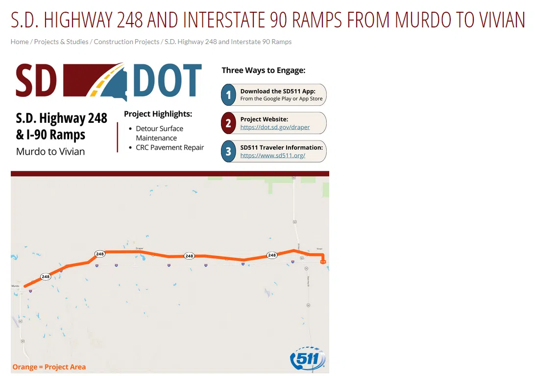 Find additional information about this multi-location project on the SDDOT website at https://dot.sd.gov/projects-studies/construction-projects/sd-highway-248-and-interstate-90-ramps.