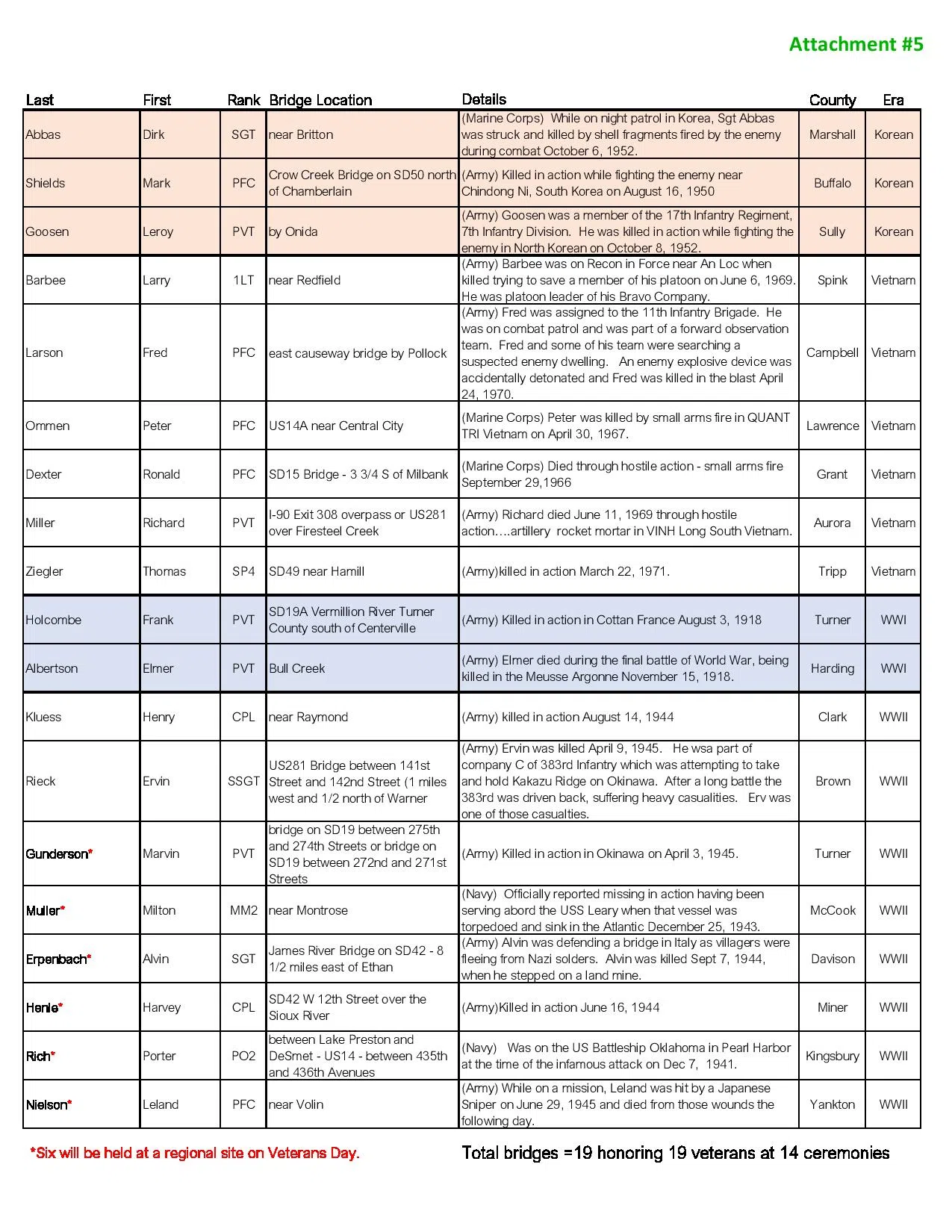 South Dakota has dedicated 53 bridges honoring 59 fallen veteran heroes since 2019.