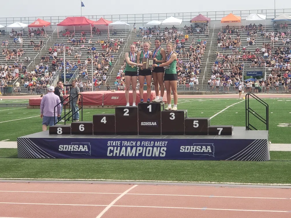 4 x 200 m relay à Lennix Dupris, Charlee Williams-Smith, Emlyn Swanson, and Kali Ringstmeyer – 1st (1:39.69) AND NEW SCHOOL RECORD, GOLD MEDAL AWARD, AND THE #1 TIME EVER IN SOUTH DAKOTA HISTORY