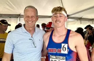 This year’s State Track & Field Meet in Sioux Falls saw record after record being broken by some of the state’s top athletes. It seemed like in every other event there was a new state record holder being crowned. Although, for Jones County’s Adrik Schoon, that was not the case in the 800m. Schoon did not win the event, he actually placed second, first place went to Bridgewater-Emery’s Holden Wollmann with a time of 1:58.84. But Schoon finished just a few strides behind with a very impressive time of 1:59.00. He may not have known it at the time, but that time of 1:59 flat dethroned a school record that had stood for 46 years. More interesting? The runner who held it for that long before him.