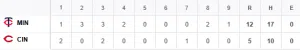 Finally! The Twins have been hurting for a win for what seems like a month, even though it’s only been about a week. But these losing streaks always feel like they drag out much longer than they actually do. The Twins took out some anger on the Reds yesterday afternoon spreading out the runs over the entirety of the game and winning 12-5 as you can see from the box score below.