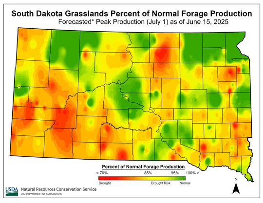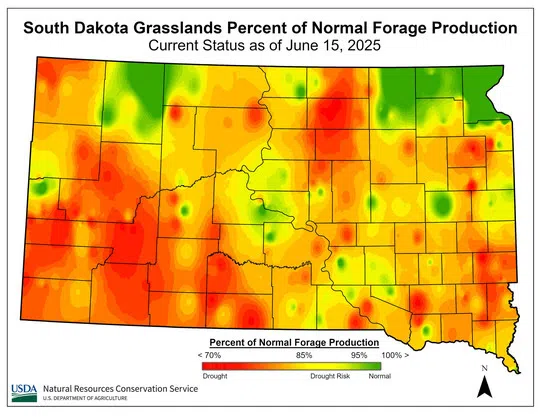South Dakota Grassland Productivity Map conditions have changed across the state since last updated on June 1, 2025. These maps, produced through the SD Natural Resources Conservation Service Drought Tool, will be updated only one more time, reporting conditions as of July 1.