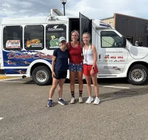 On a warm morning, the runners took off in front of a steadily growing crowd of parade goers who cheered on the runners before they made the loop back. While the numbers of contestants continues to change each year, the winners of the race surely hasn’t. This year, we again saw the brother/sister combo of Jared and Jessica Lutmer blow away the rest of the field and come in first like we saw last year. The women’s field saw Jessica Lutmer complete the race and come across as the first female finisher with a time of 25 minutes, 23 seconds. Second was taken by Mason Berg with a time of 27:47 and Kathryn Summer came in third with a time of 29:17. All three pictured below.