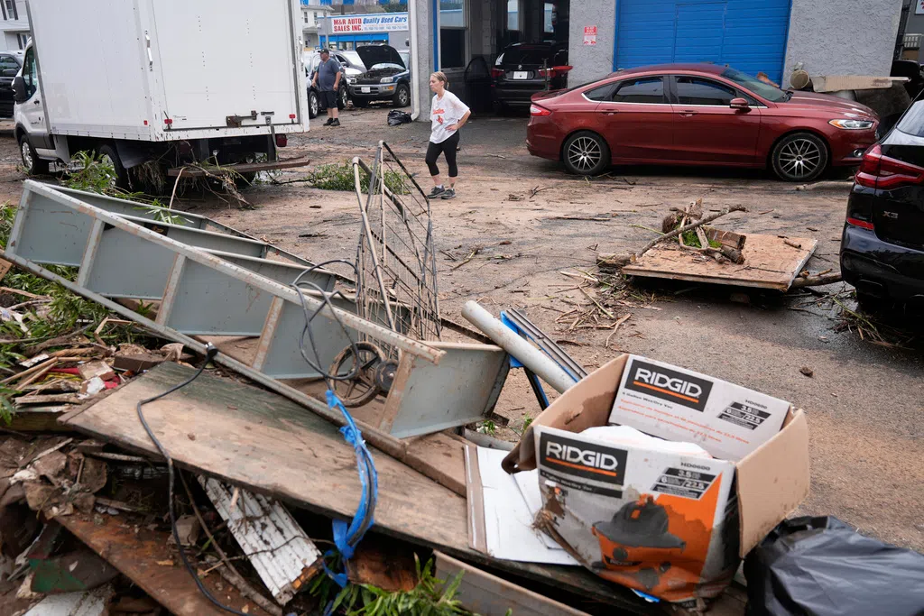 In one flooded North Plainfield, New Jersey, neighborhood, a house caught on fire and collapsed, possibly due to an explosion, not long after the family inside had evacuated, authorities said. No injuries were reported.