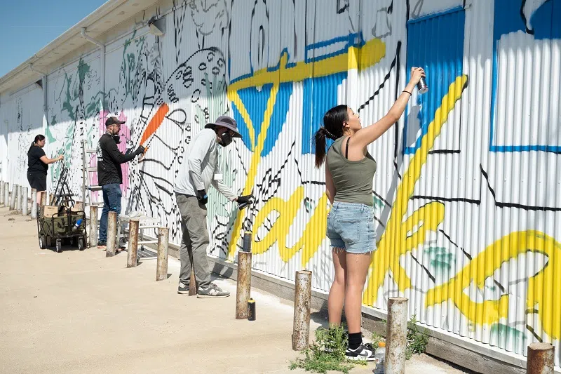 Youth artists with their Smithsonian Folklife Festival mural.