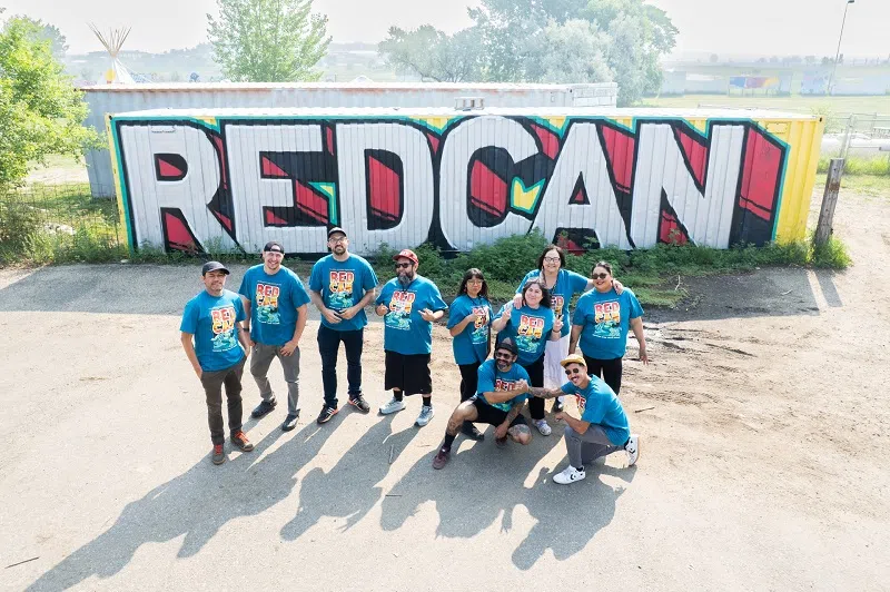 2025 RedCan featured artists with Julie Garreau, CEO of the Cheyenne River Youth Project (second from right, in rear)