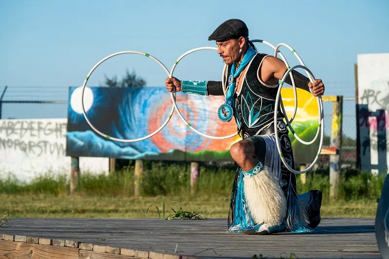 Hoop dancing class with the Sampson Brothers.