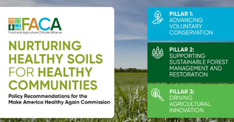 The Food and Agriculture Climate Alliance (FACA) published a new report (July 31, 2025) entitled Nurturing Healthy Soils for Healthy Communities. The report recommends the Make America Healthy Again Commission support policies that reward stewardship and invest in innovation as part of a national strategy to create lasting, healthy outcomes for all communities, rural and urban alike.