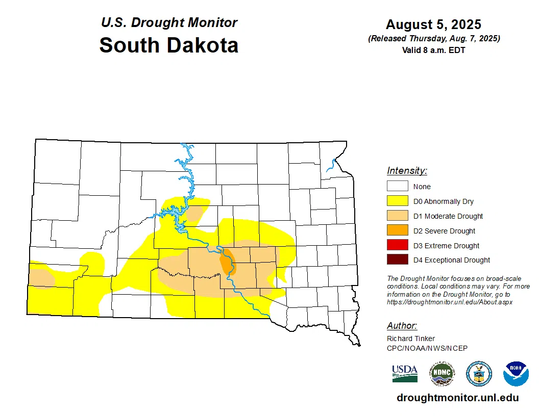However, small parts of Lyman, Brule and Buffalo counties are the driest in the state. It puts those areas in D-2, or severe drought conditions.