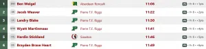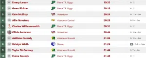 For the middle school results, Pierre placed first through fifth, and placed seven girls in the top eight. Below is the full list of times and finishes: