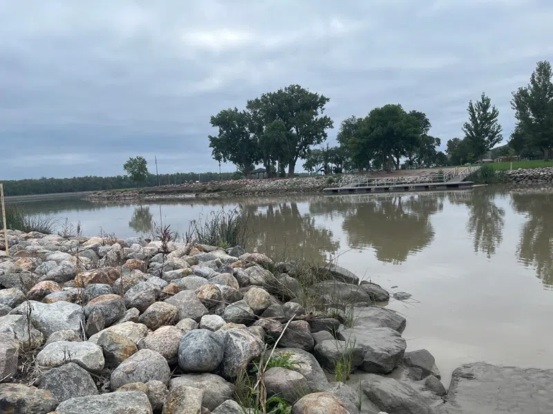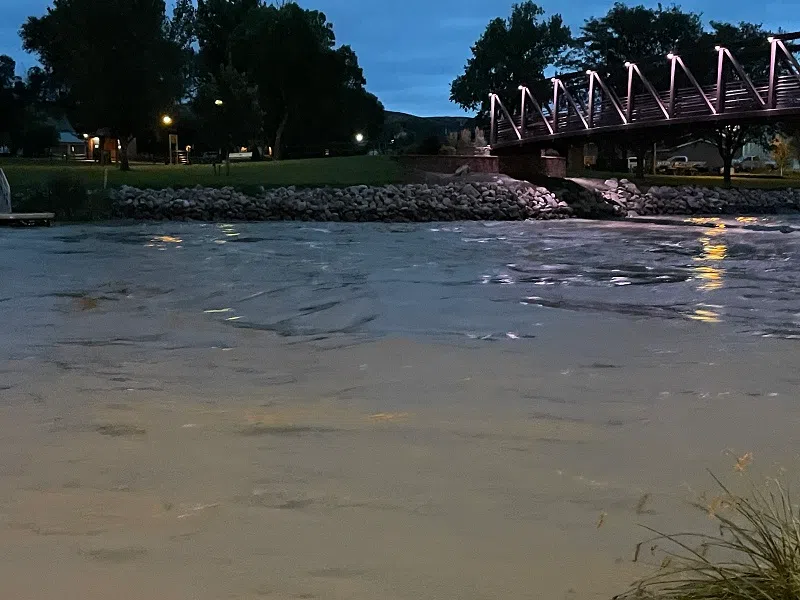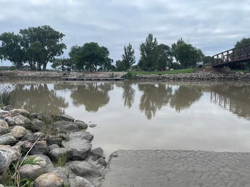 Bad River flowing through Fort Pierre, SD. Sept. 19, 2025, at 7am CT.