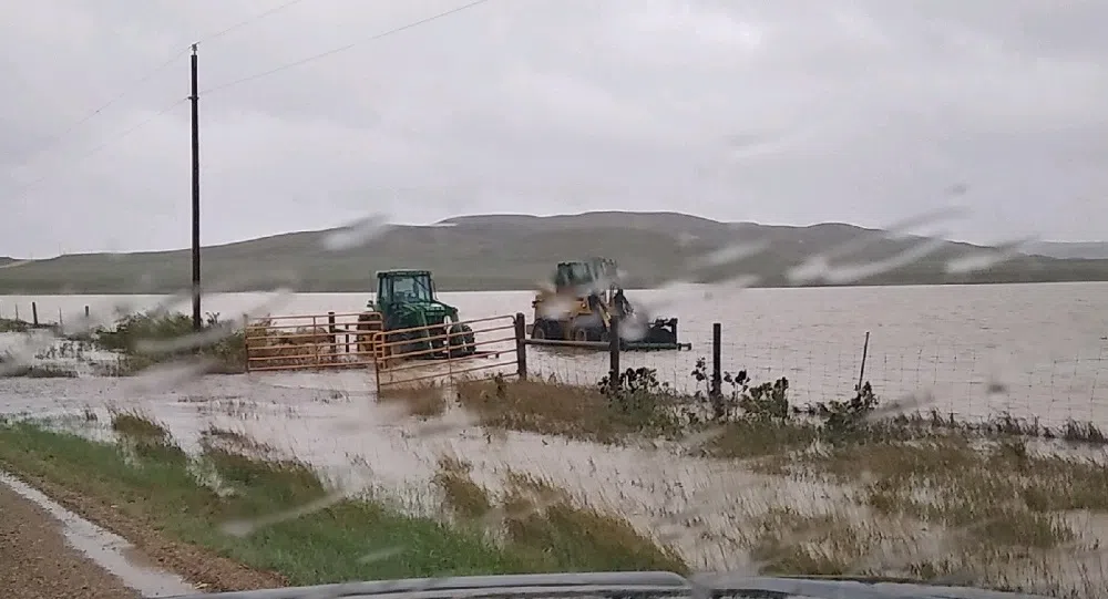 Flooding 23 miles west of Fort Pierre in Stanley County on Bad River Road. Photo taken the morning of Sept. 18, 2025.
