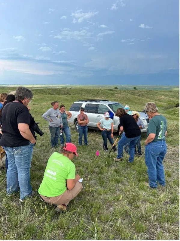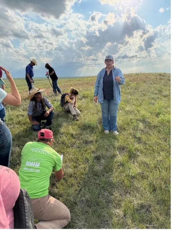 Kaylee Wheeler, SDSU Extension Range Field Specialist, discusses range plant identification with attendees of the June 2025 pasture chat co-hosted by SDSU Extension.