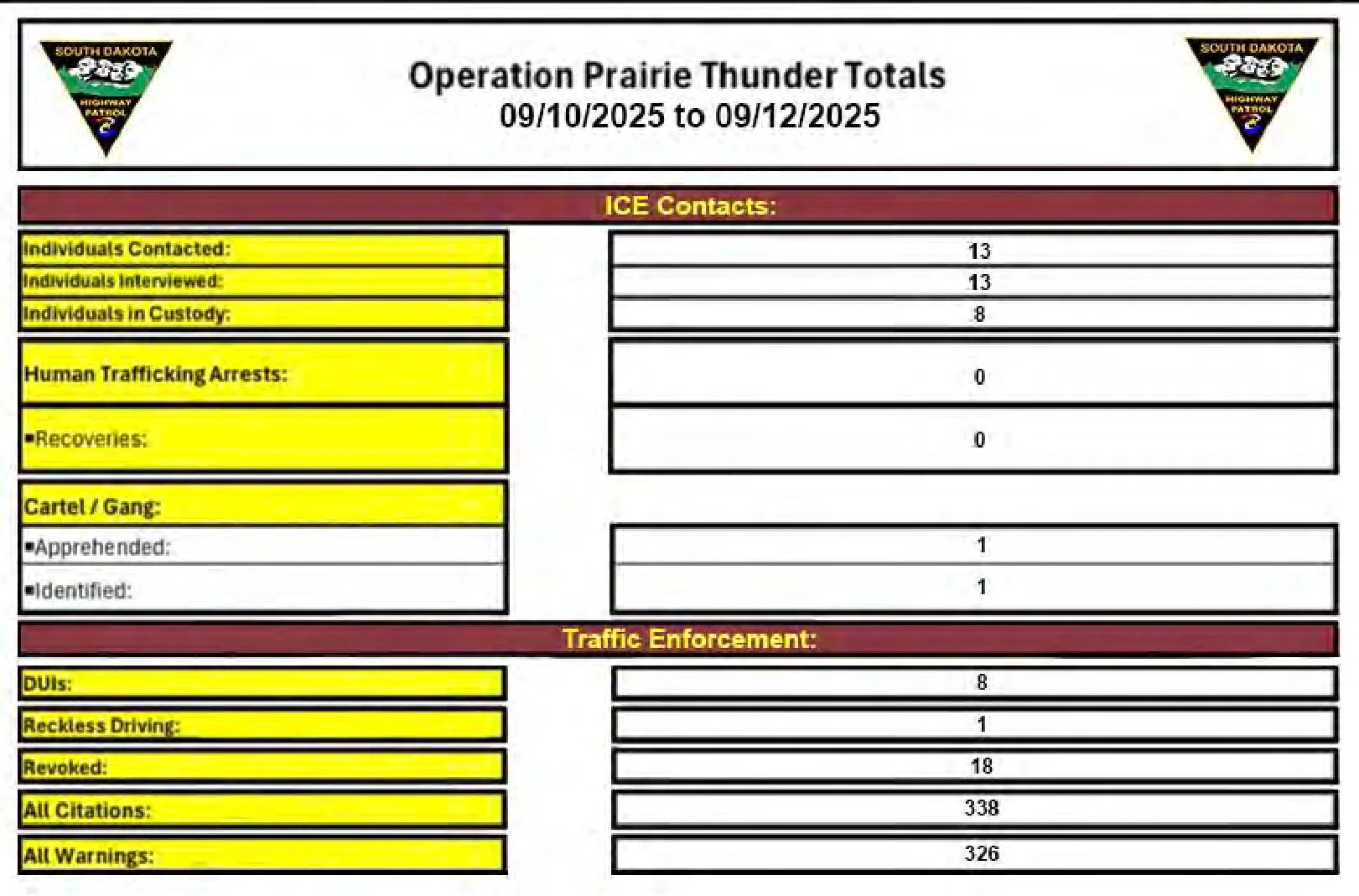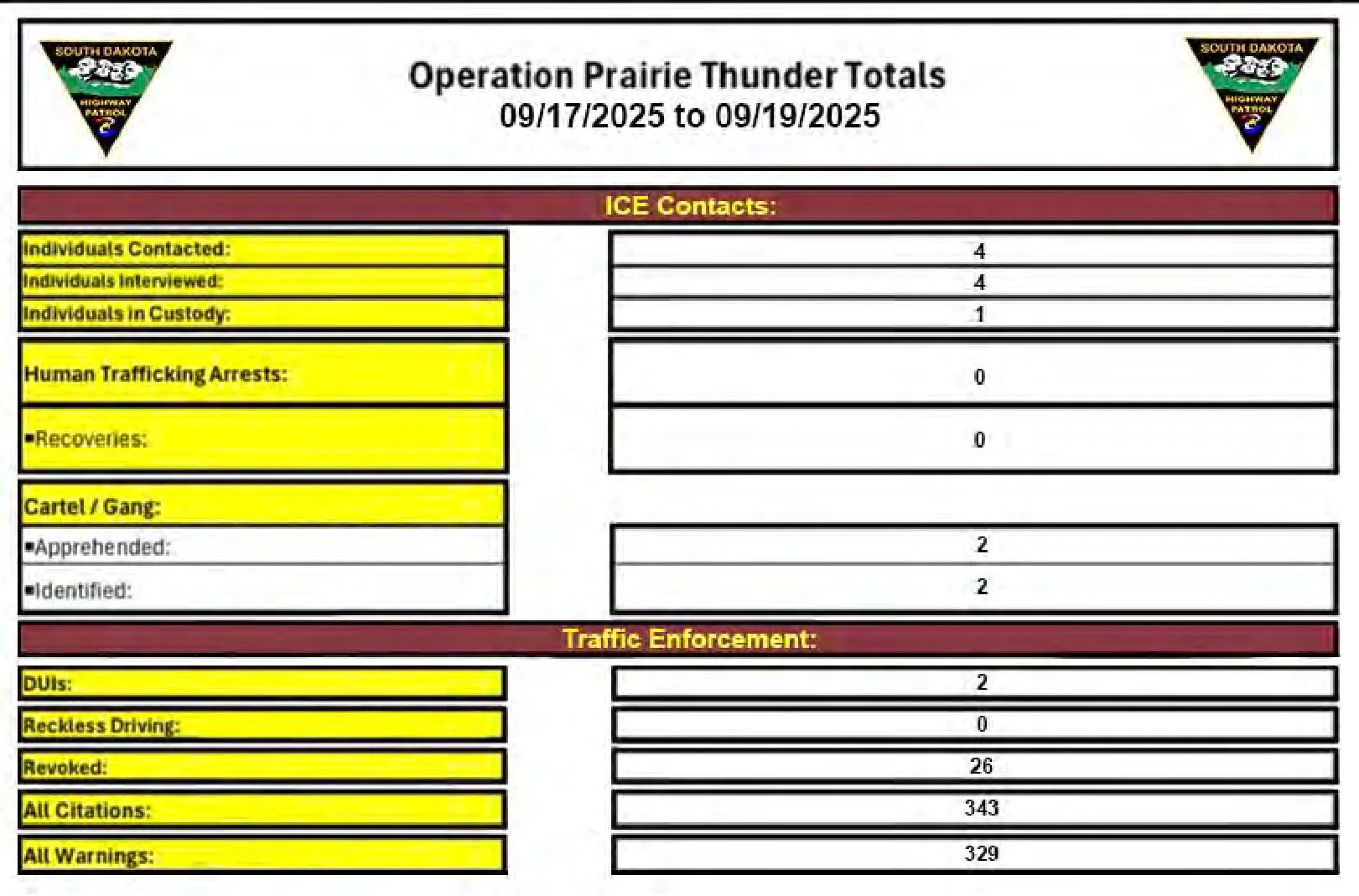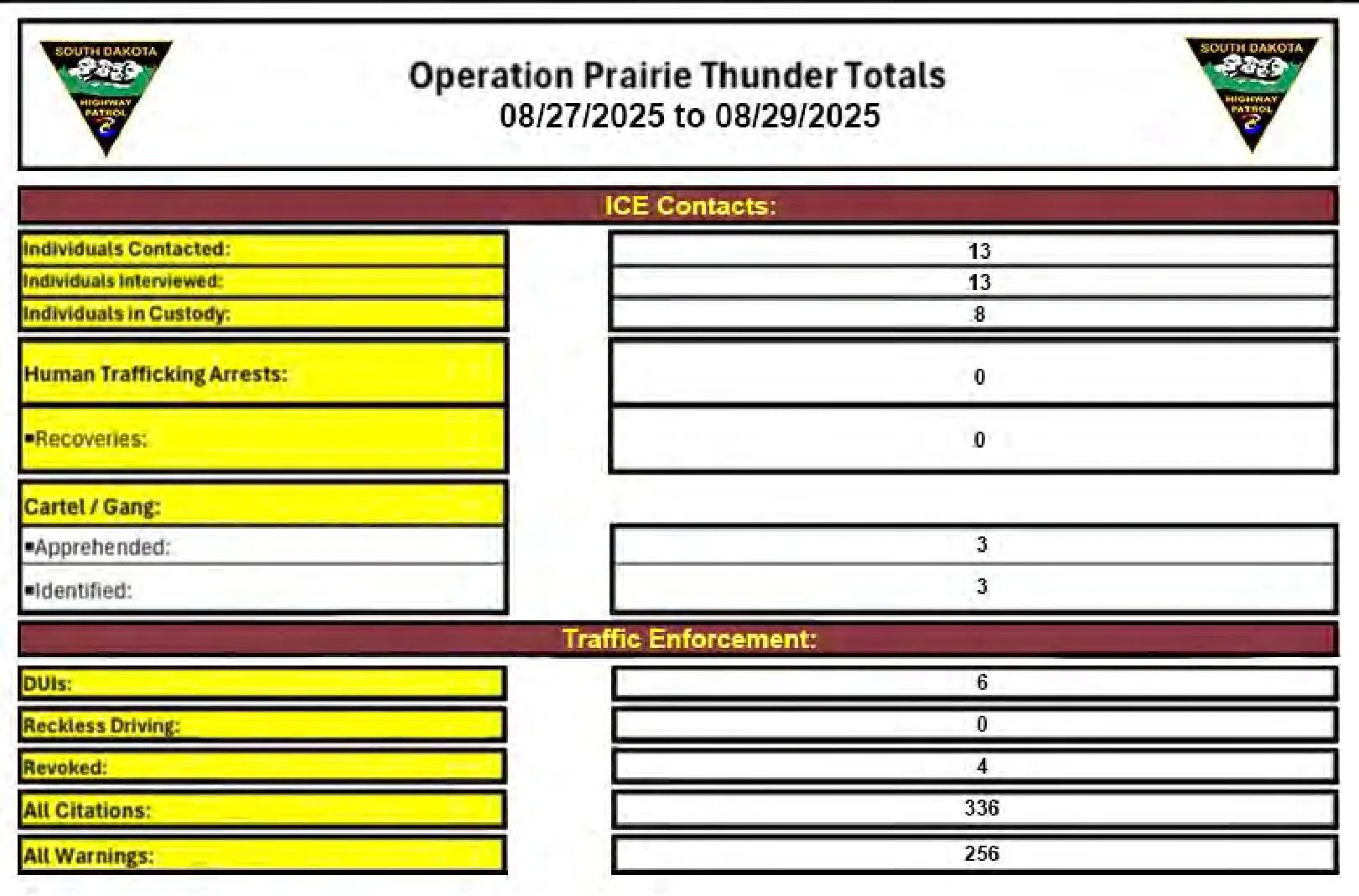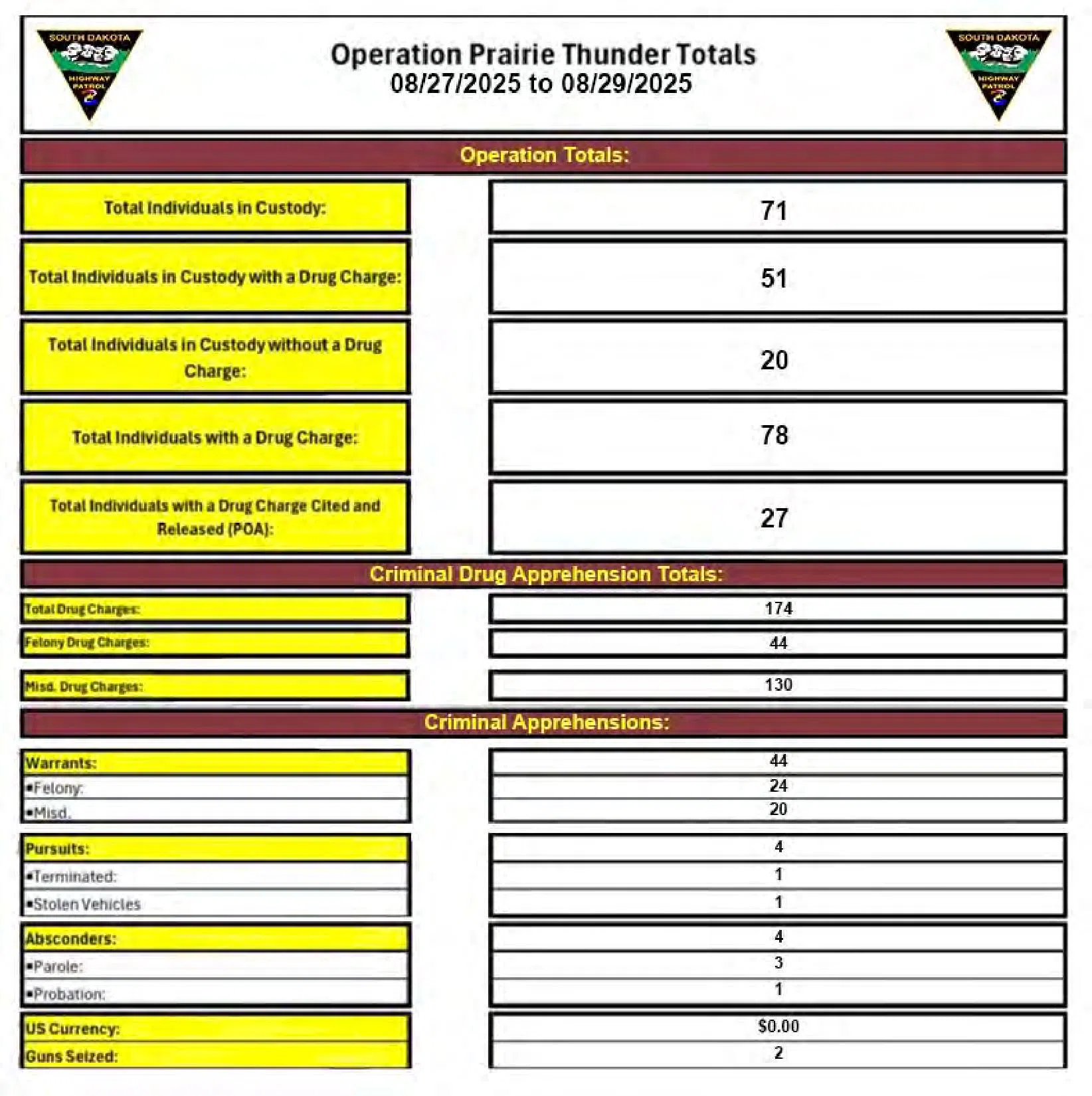 “We continue to take great strides in our mission to keep South Dakota strong, safe, and free,” said Governor Larry Rhoden. “All of the departments and agencies involved in Operation: Prairie Thunder are making progress on their missions. I am confident that their efforts will lead to a safer future for our communities.”