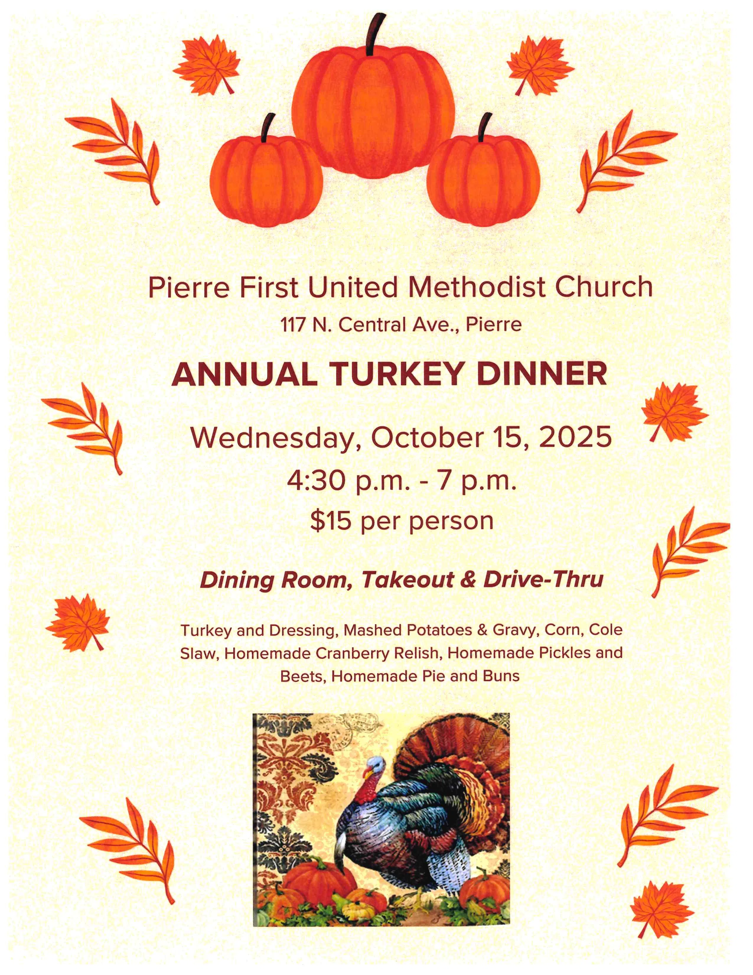FIRST UNITED METHODIST CHURCH ANNUAL TURKEY DINNER 2025 PIERRE