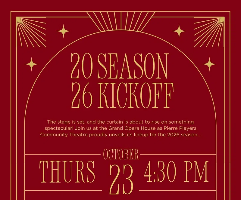 The Pierre Players community theater group kicks off its 2026 season today (Oct. 23, 2025) from 4:30-7pm at the Grand Opera House on upper Pierre Street.