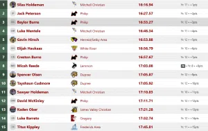 Boys Class B top-15 placements: