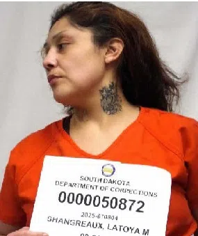 Latoya Shangreaux was arrested in the Rapid City area on Saturday (Nov. 22, 2025). She is currently being held in the Pennington County Jail. She was placed on escape status after failing to return to the Pierre Minimum Center following her work release shift on Nov. 7.
