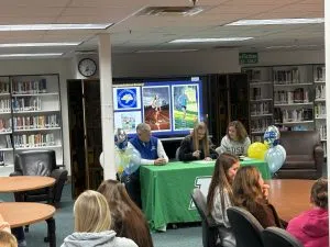 Larson was surrounded by teammates, family, coaches and friends Wednesday afternoon as she thanked all of those who helped get her to this point in her career. Larson made special mention to Coach Royer for providing the flag seen in the title photo. She also thanked her coaches from years past at Chester, but also, one of her closes coaches, her mother Misty. Emery put pen to paper as seen below, and was applauded as she signed her LOI to bring her talents to Brookings.