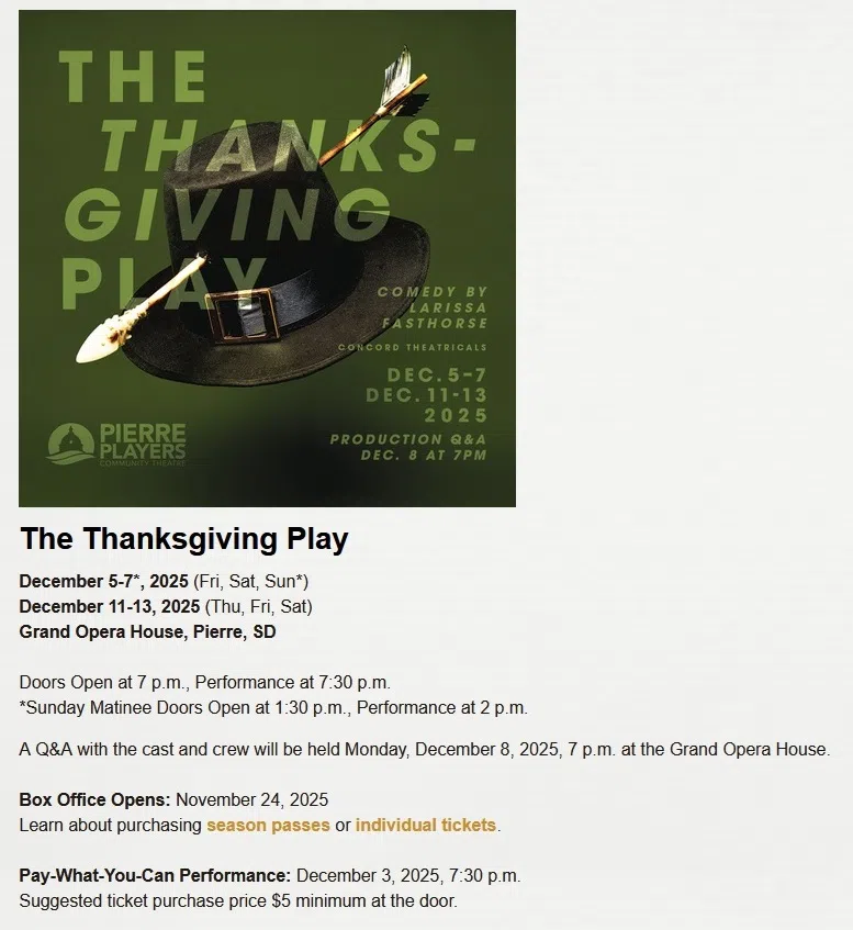 The Pierre Players stopped by KGFX to talk about their latest production. https://media-cdn.socastsrm.com/wordpress/wp-content/blogs.dir/2626/files/2025/12/piyn-112425.mp3