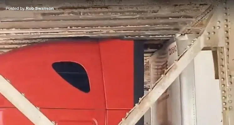 Photo credit Nancy Riggle via the Truck vs Bridge Pierre, SD, Facebook page.