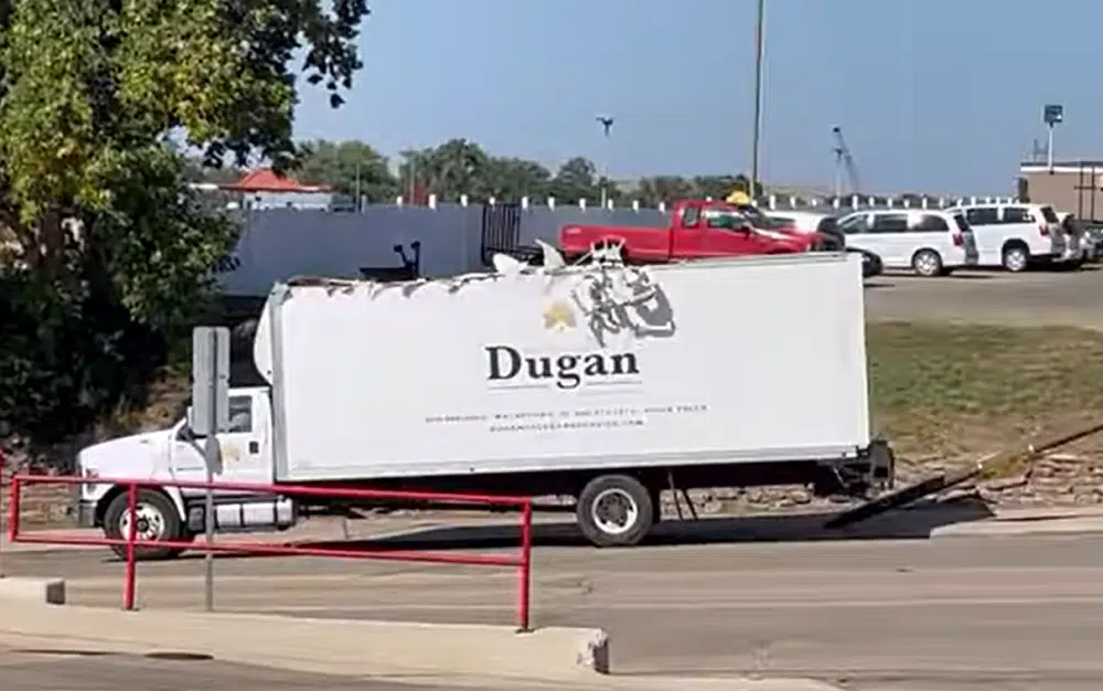Screenshot image of Trish Jurgensen’s video posted to Truck vs. Bridge, Pierre SD Facebook page.