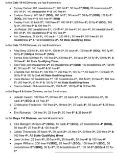 9-10 Girls: Sophie L- 1st, Charlotte H- 2nd, Kodi S- 3rd