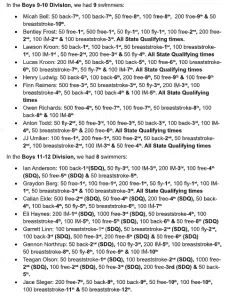 9-10 Boys: Lawson K- 1st, Bentley F- 2nd, JJ U- 3rd