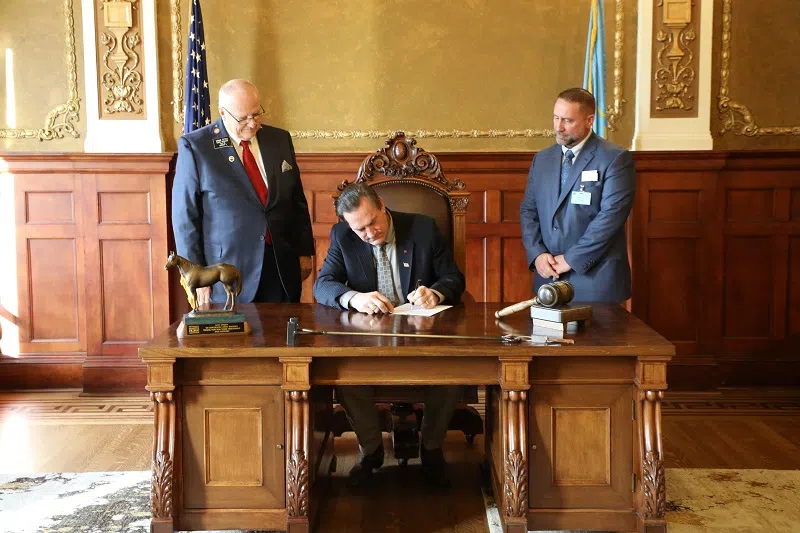 He signed SB 12 at a private signing ceremony with the bill’s prime sponsor, Senator Ernie Otten, and South Dakota Department of Veterans Affairs Secretary Jeremiah Schneider.