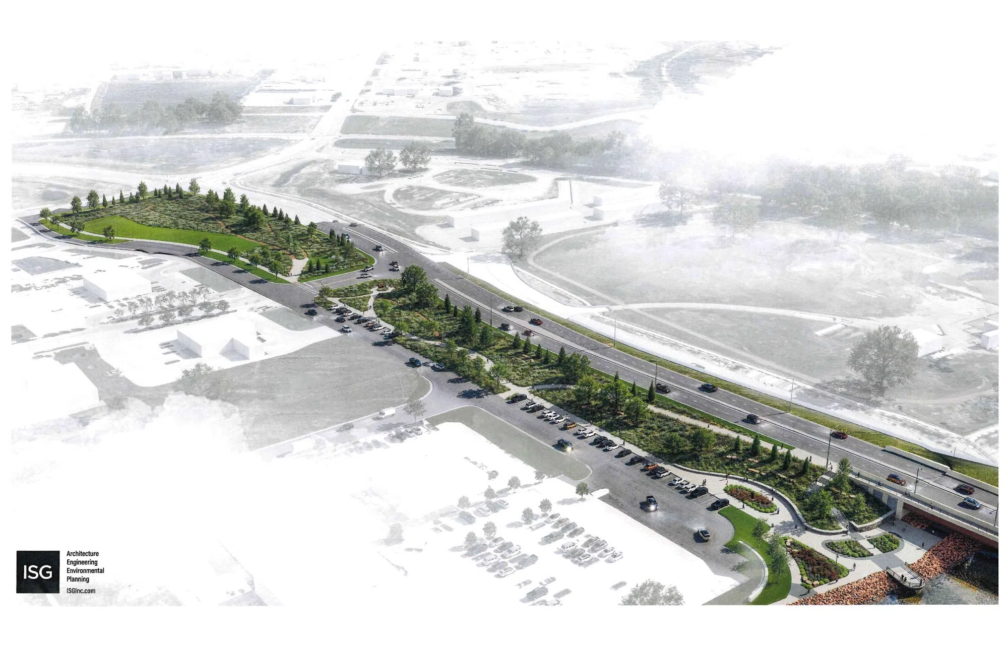 Engineer’s rendering of Fort Pierre Waldron Memorial Plaza with Tatanka Trail.