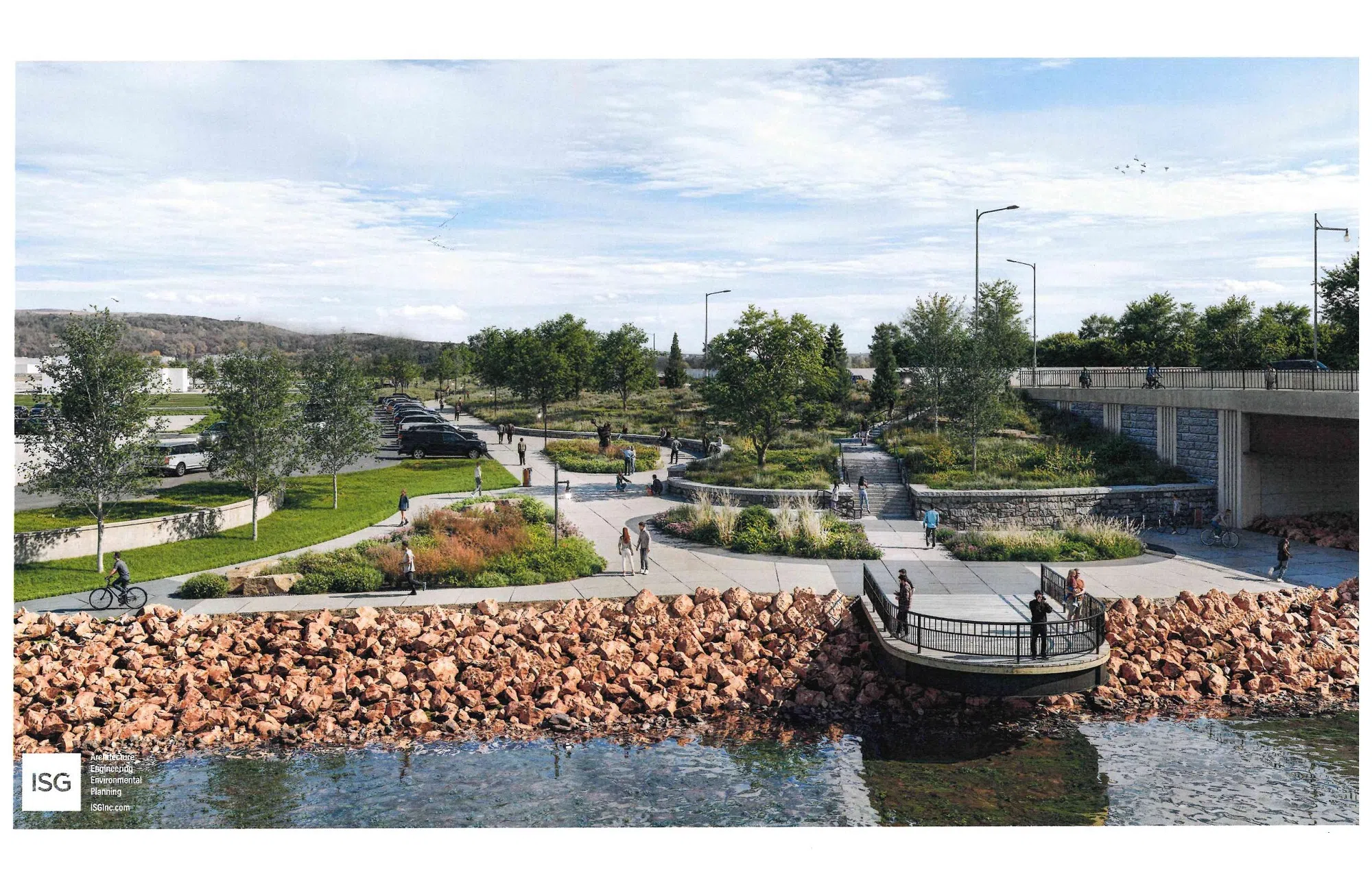 Mayor Gloria Hanson said Phase One of the project was the pedestrian bridge spanning the opening in Drifter’s Marina, which connected the recreational trail along the Missouri River. She said Phase Two includes the remaining elements of the plaza area including contouring of the landscape, enhanced terrain features, native plantings and walking paths.