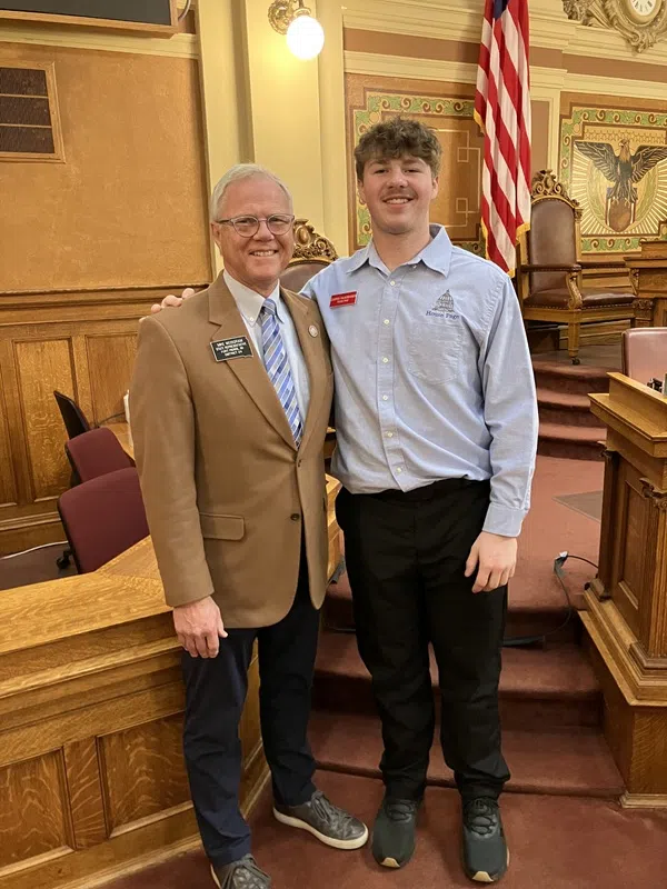 Rep. Mike Weisgram with Cooper Falkenhagen, a student at Agar-Blunt-Onida School in Onida.