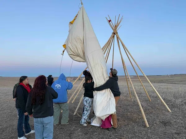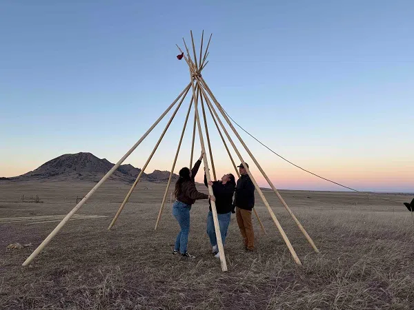 Setting up camp at Wakanyeja Kin Wana Ku Pi (The Children Are Coming Home), CRYP’s property adjacent to sacred Bear Butte. Courtesy photo.