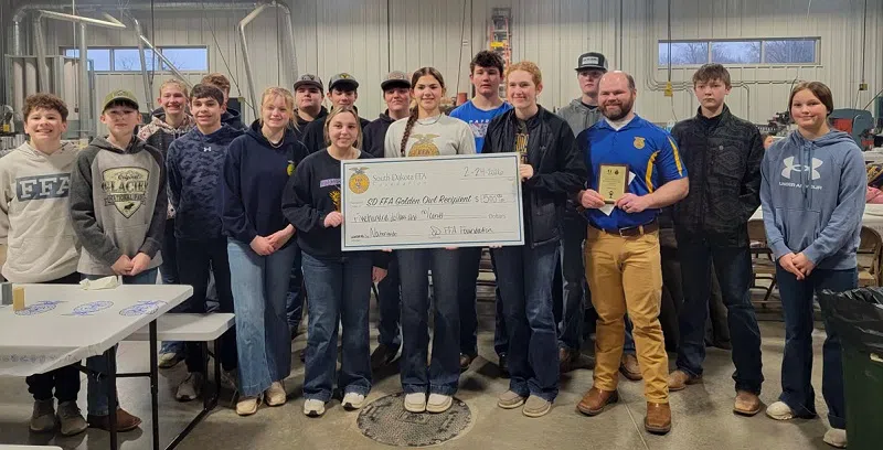 Minneapolis Fed: Farm Incomes Drop Despite Abundant HarvestsRenewable Fuels Association: Middle East Uncertainty Shows Need for Year-Round E15Hitchcock-Tulare Agriculture Teacher among eight finalists for South Dakota FFA Golden Owl Award ®NHL Sunday Scoreboard & Monday ScheduleNBA Sunday Scoreboard & Monday ScheduleMLB Spring Training Sunday Scores & Monday ScheduleWater for the Next (Ten) Generations by District 24 Rep. Will MortensonSouth Dakota Lawmakers take up abortion, voting rights, data centers to begin this week's workA total lunar eclipse will turn the moon blood red on Tuesday across several continentsFort Pierre City Council meets tonightNHL Sunday Schedule & Saturday ScoreboardCBB Top-25 Saturday ScoreboardMLS Sunday Schedule & Saturday ScoreboardSpring Training Sunday ScheduleBrackets are set, the Govs are in: A full look at AA postseasonGettysburg FFA Chapter officers connect with others, talk about agriculture during National FFA WeekFarm Journal survey shows producers "Fighting for Survival"Cheyenne River Youth Project Hosts Young Women's Winter Camp as Part of Lakota Culture InternshipFarm Rescue Expands into Missouri; Nation's only nonprofit delivering hands on operational support now serving 11 statesAgriculture In-depth-- Fertilizer price takes big bite out of row crop farmer income in 2025