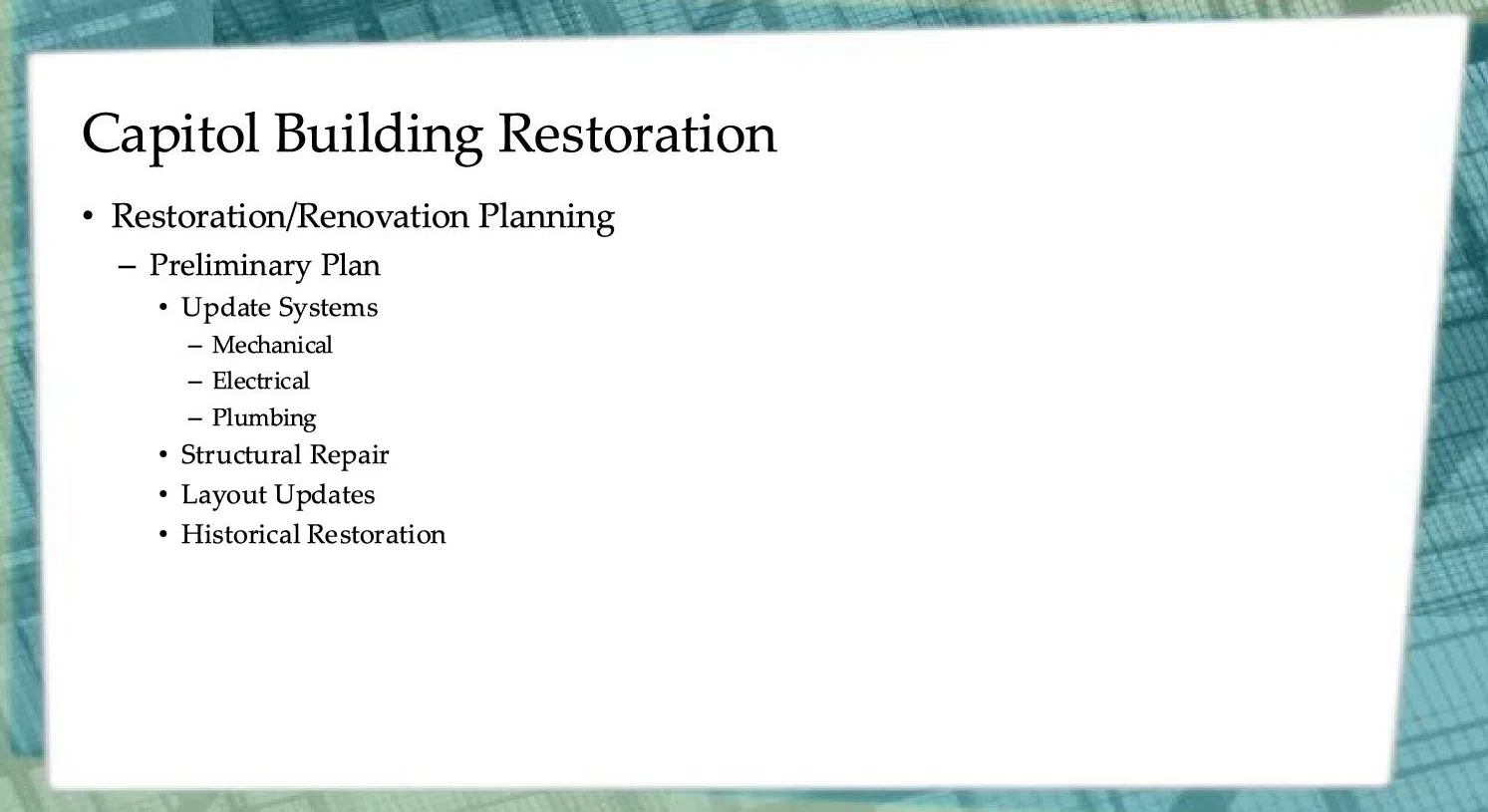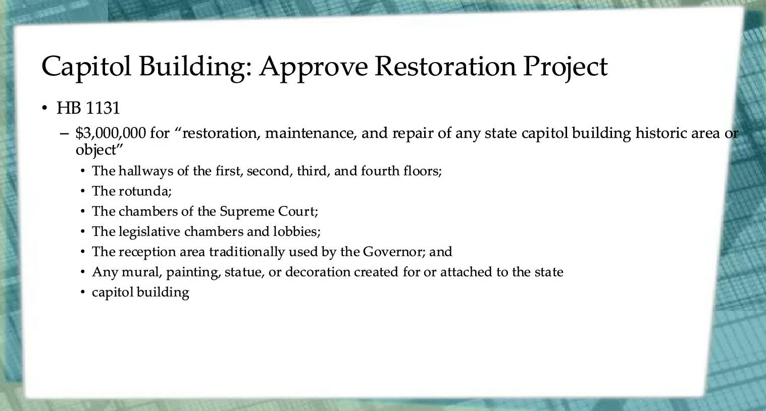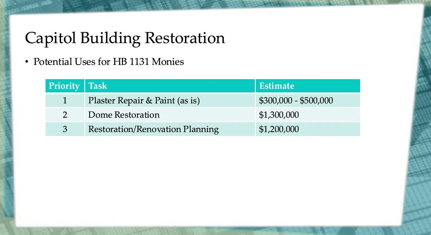 Day said the in-depth look they take at the systems, would also include how the space within the Capitol could be better used.
