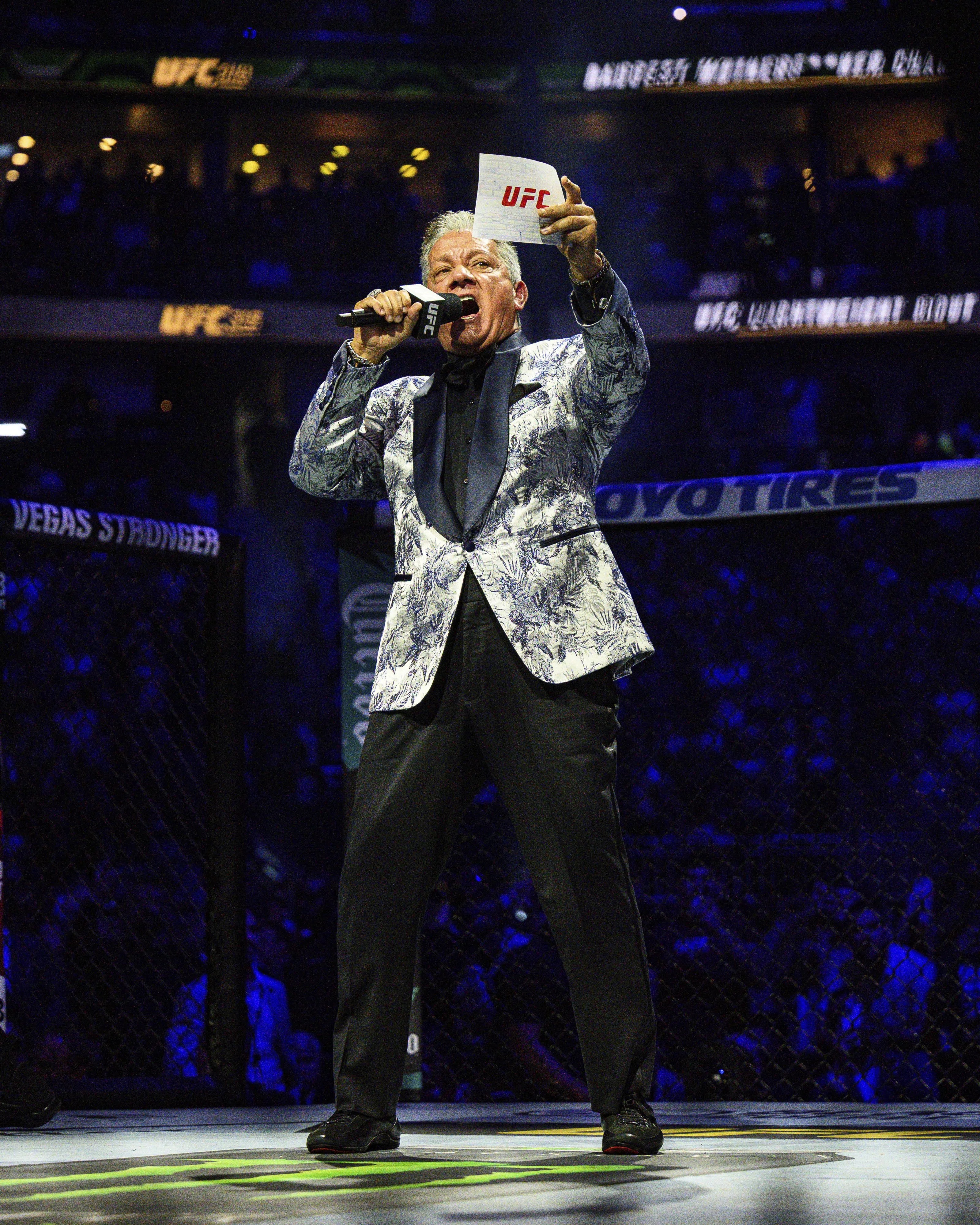 Justin Cowart Dec 07, 2025 Bruce Buffer announces for the lightweight title fight at UFC 318 in New Orleans, La., Saturday, July 19, 2025. (AP Photo/Ella Hall)