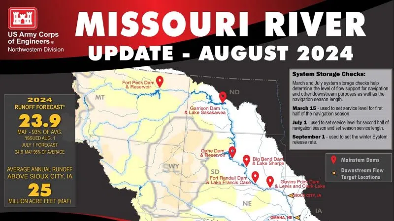 July runoff in the Missouri River basin above Sioux City, Iowa was 2.8 million acre-feet, 85% of average with below-average runoff in the upper three reaches and above-average runoff in the lower thre...