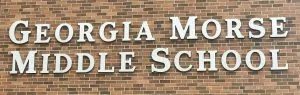 William Harvey speaks with Georgia Morse Middle School Principal Brandon Lowery and new Assistant Principal Natalie Feller